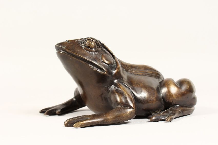 A GOOD HEAVY BRONZE FROG