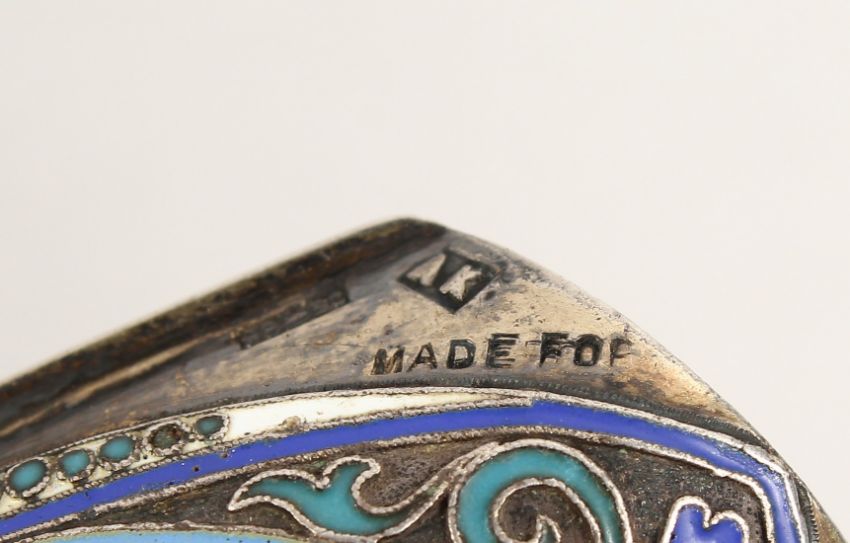 A RUSSIAN SILVER AND ENAMEL SHOVEL