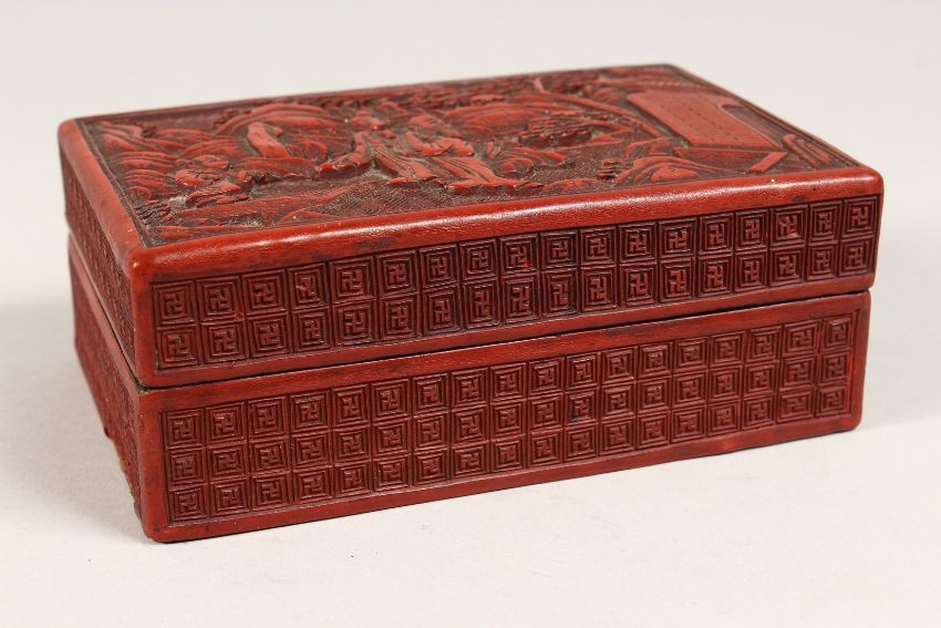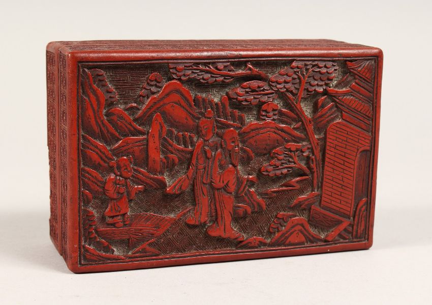 A CINNABAR LACQUER BOX AND COVER