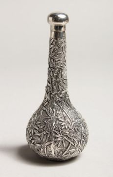 A CHINESE SILVER PERFUME BOTTLE wit bamboo design.