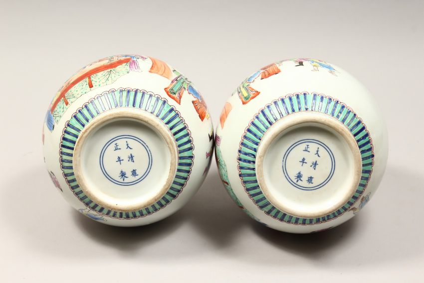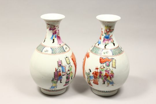 A PAIR OF CHINESE PORCELAIN BOTTLE VASES, painted with figures with attendants