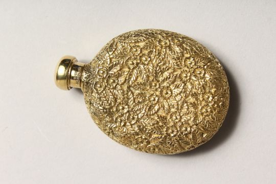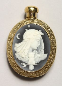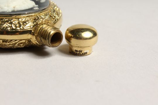 A 9CT. GOLD PLATED CAMEO SCENT BOTTLE