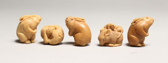 FIVE JAPANESE CARVED BONE NETSUKES
