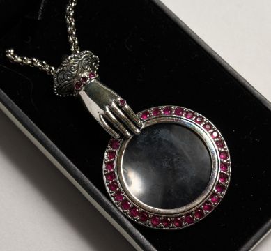 A SILVER RUBY HAND MAGNIFYING GLASS.