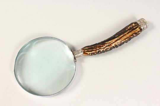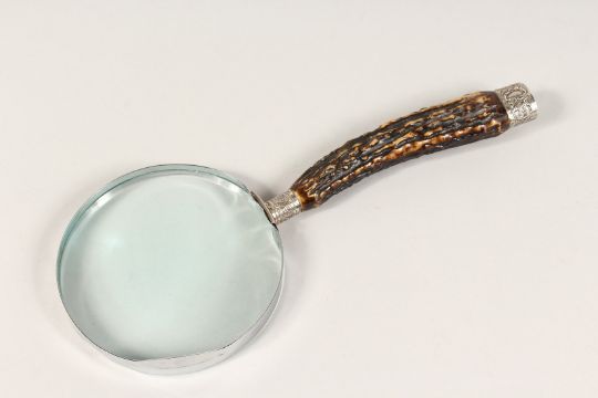 A LARGE VICTORIAN SILVER MOUNTED HORN MAGNIFYING GLASS