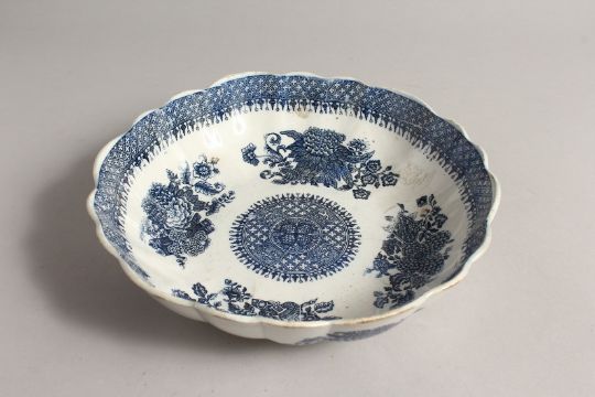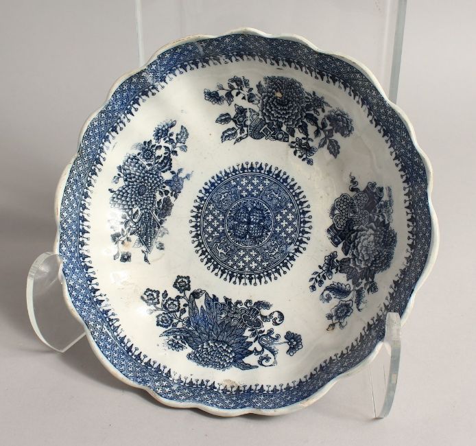 A BLUE AND WHITE SHAPED CIRCULAR DISH