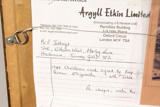 A FRAMED AND GLAZED, 1948 CHRISTMAS CARD, SIGNED BY KING GEORGE VI AND QUEEN ELIZABETH, Table Mountain in the background