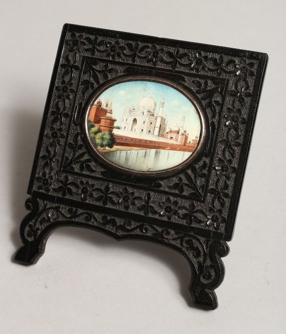 AN INDIAN OVAL MINIATURE, Taj Mahal, in a colourful frame