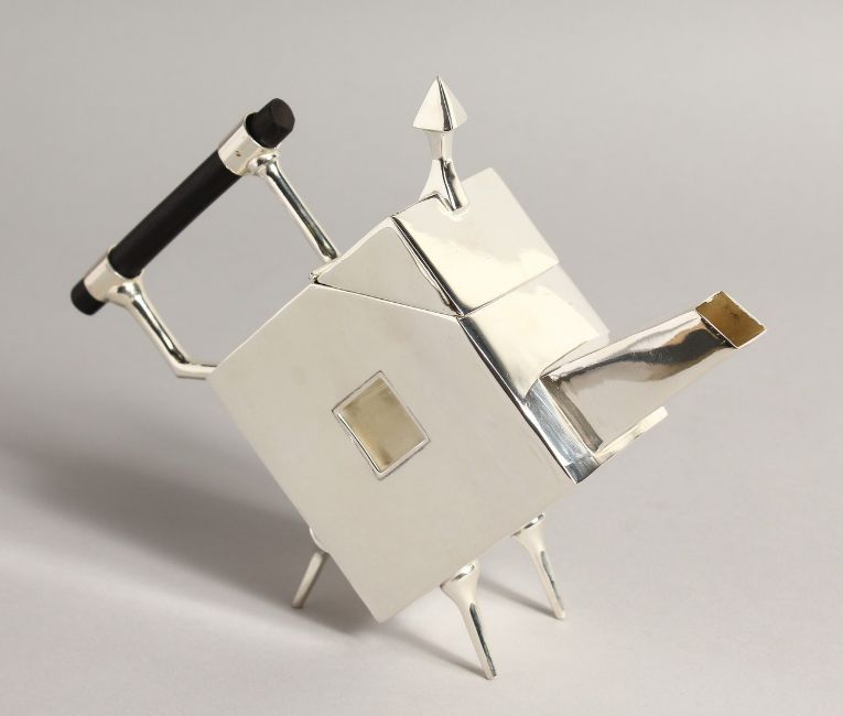 A CHRISTOPHER DRESSER DESIGN DIAMOND TEA POT.