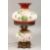 A VICTORIAN OPALINE AND METAL OIL LAMP AND STAND converted to electricity and painted with flowers.