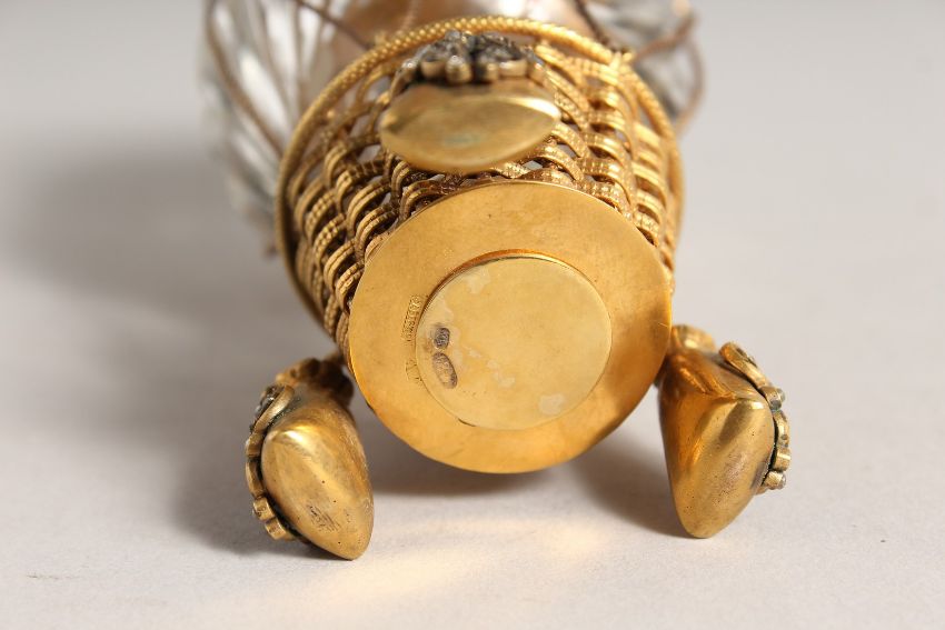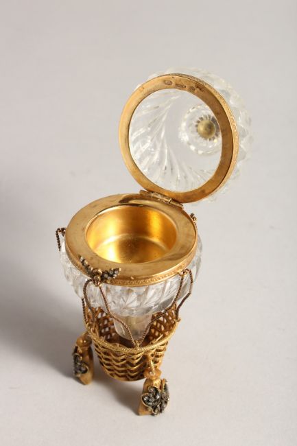 A SUPERB RUSSIAN SILVER GILT HOT AIR BALLOON BOX AND COVER as a glass box and cover, in a basket with diamond set feet.