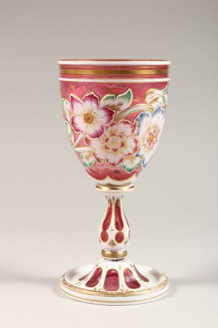 A BOHEMIAN COLOURED OVERLAY GOBLET