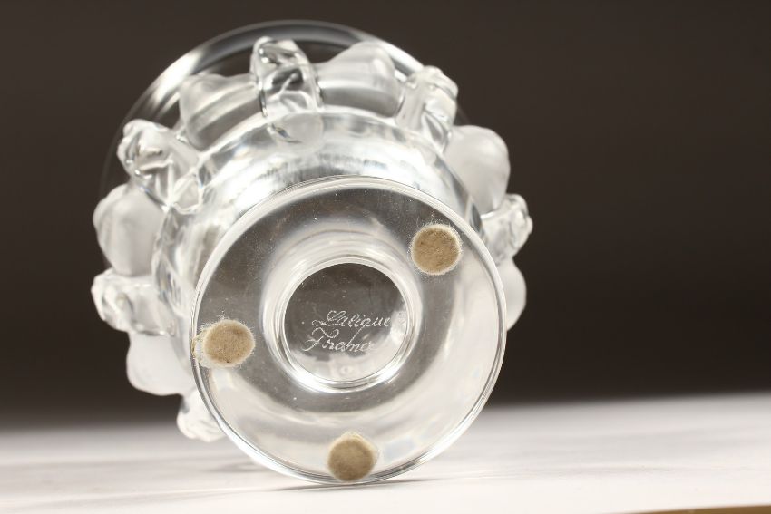A LALIQUE GLASS VASE with a band of birds, engraved Lalique, France