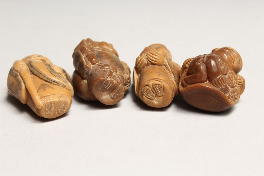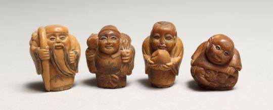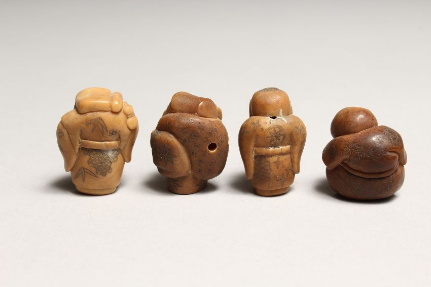FOUR JAPANESE CARVED BONE NETSUKES
