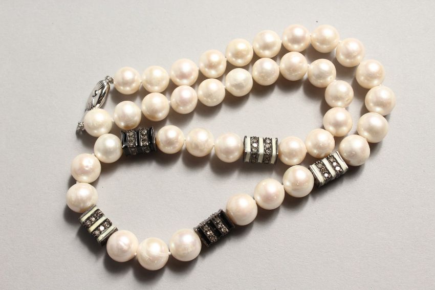 A STRING OF PEARLS WITH DIAMOND SECTIONS.