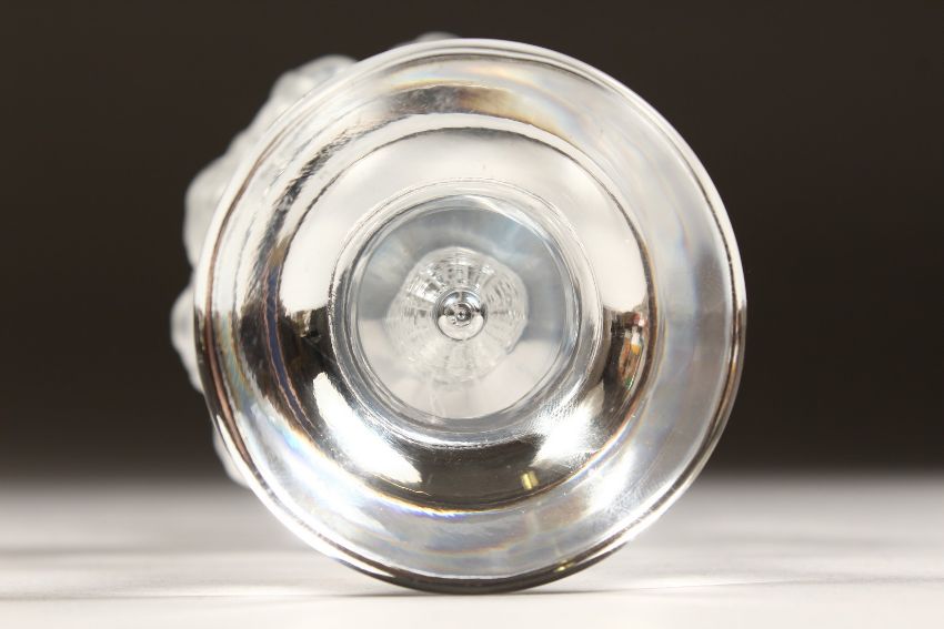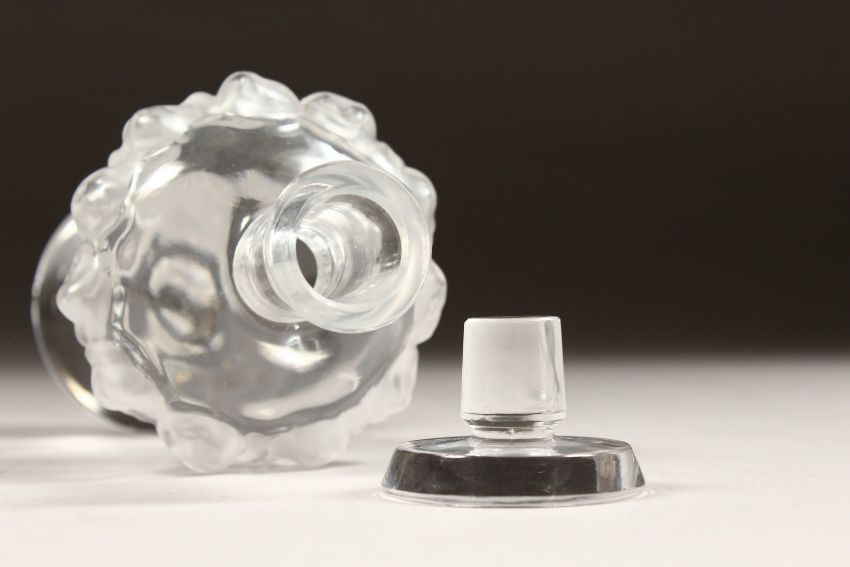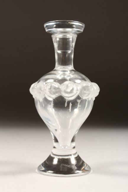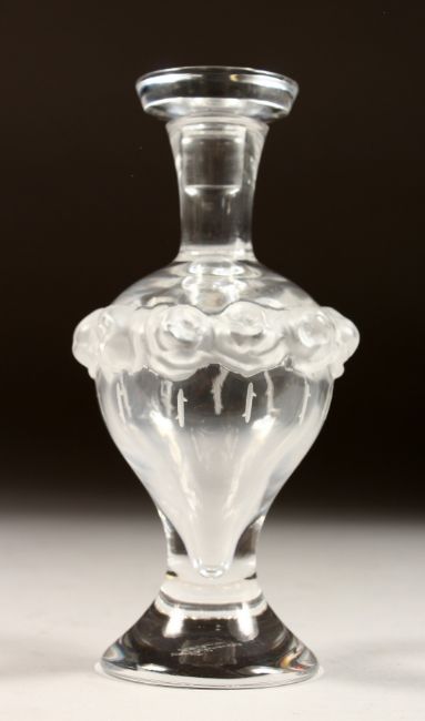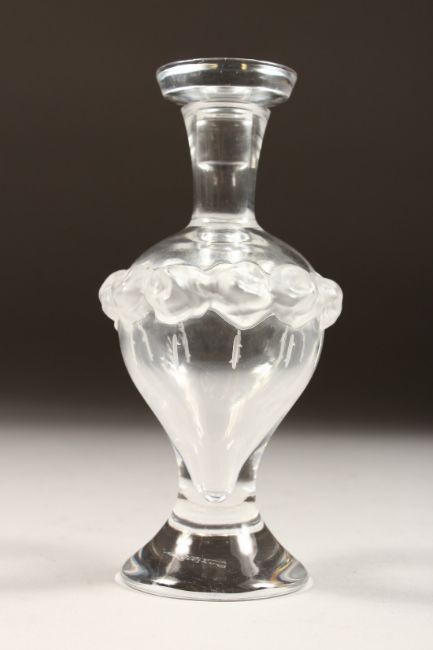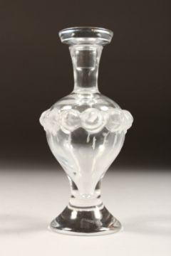 A LALIQUE GLASS TALL SCENT BOTTLE AND STOPPER, engraved Lalique, France