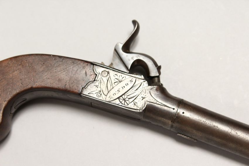 A PERCUSSION CAP PISTOL by DEAKIN, LONDON, with wooden handle