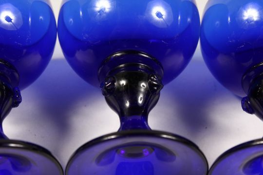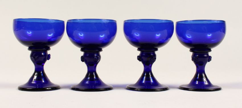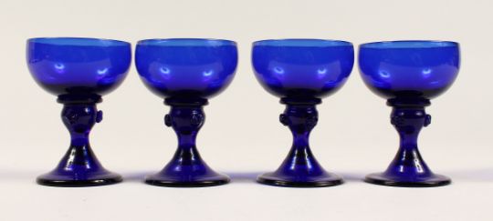 A SET OF FOUR BRISTOL BLUE GLASSES