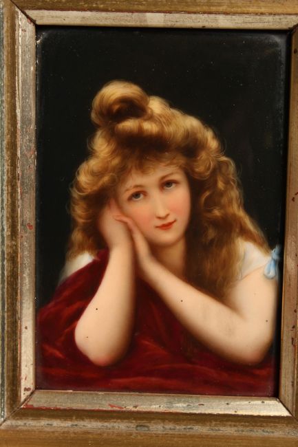 A GERMAN PORCELAIN MINIATURE OF A YOUNG LADY