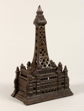 A VICTORIAN CAST IRON BLACKPOOL TOWER NOVELTY BOX
