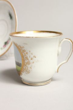A 19TH CENTURY COPENHAGEN B. & G. CUP AND SAUCER with a landscape with deer.