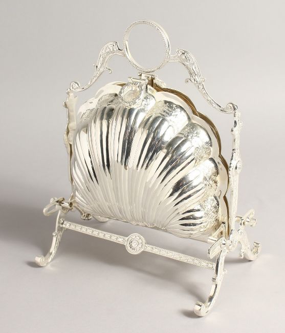 A PLAIN SHELL DESIGN FOLDING CHEESE AND BISCUIT STAND