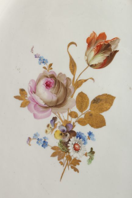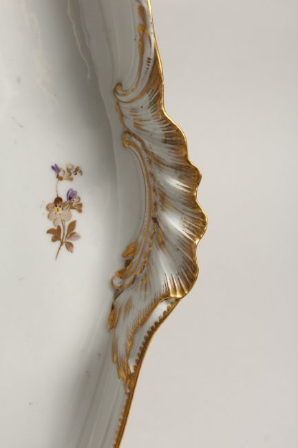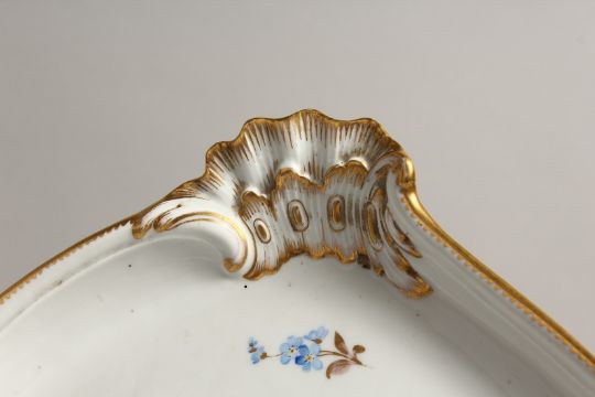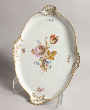A GOOD 20TH CENTURY MEISSEN OVAL SHAPED TRAY, with gilt borders and painted with flowers.