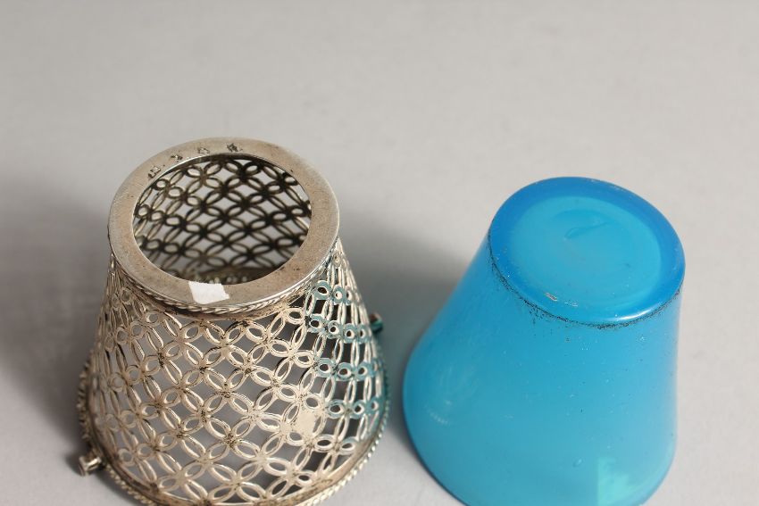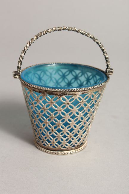A SMALL GEORGE III CREAM PAIL with swing handles and glass liner