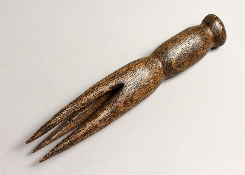 A CARVED WOOD TRIBAL FORK