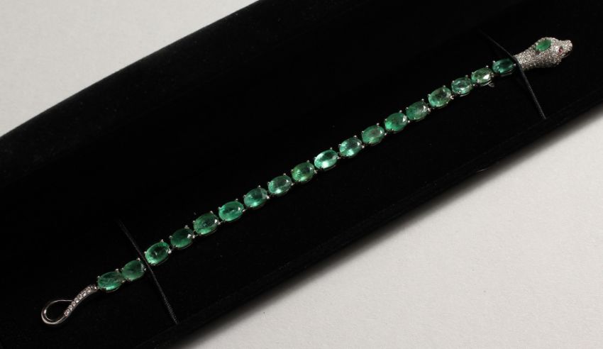A SILVER EMERALD SET SNAKE LINE BRACELET