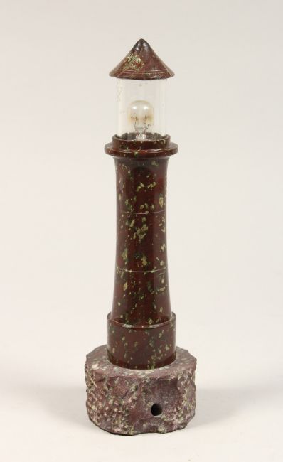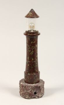 A CORNISH SERPENTINE MARBLE LIGHTHOUSE