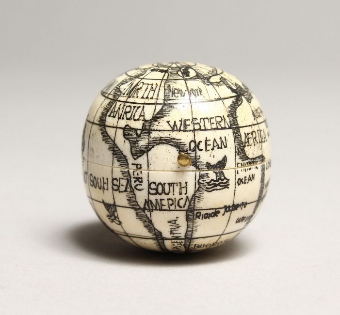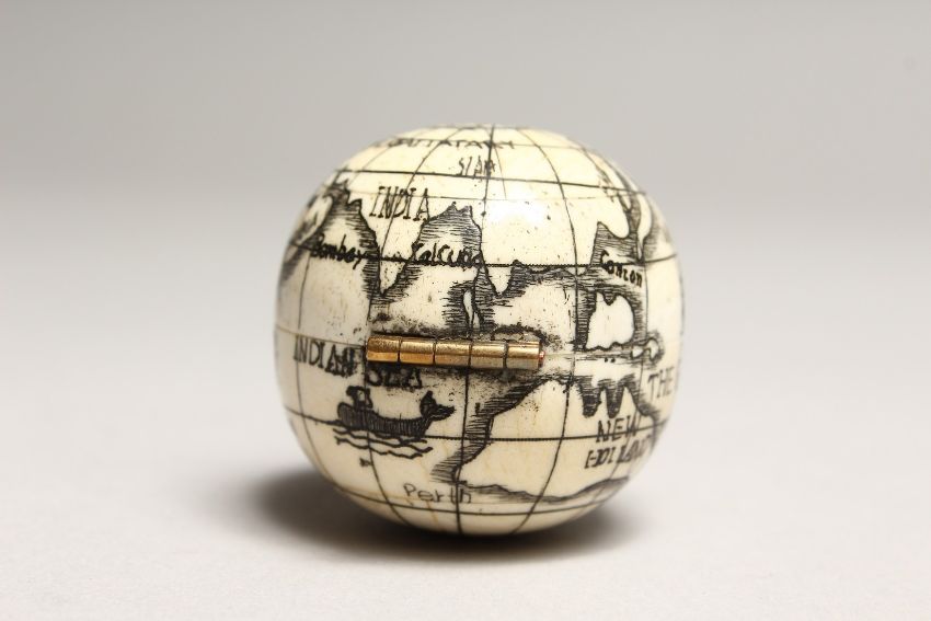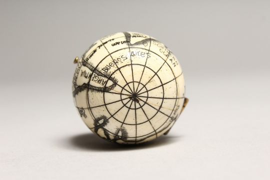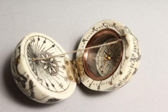 A SMALL BONE FOLDING GLOBE COMPASS.