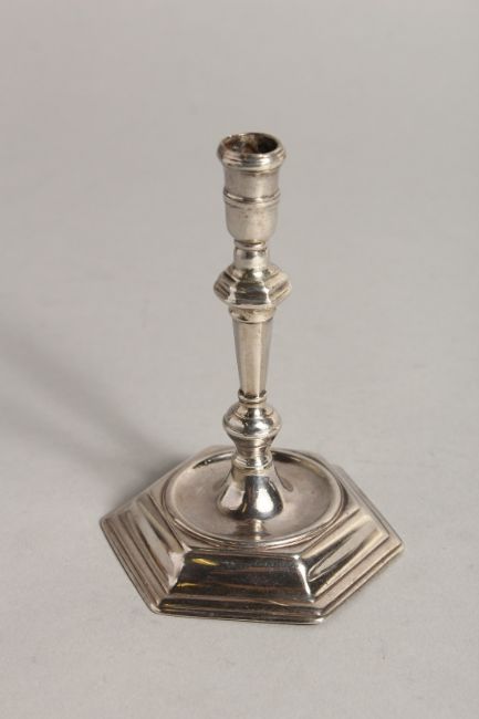 A GOOD GEORGE I TAPER STICK on hexagonal base