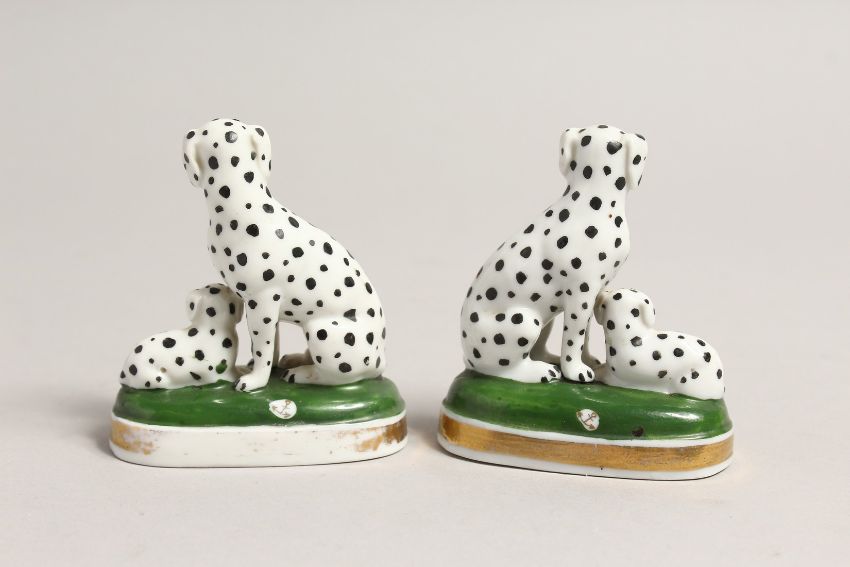 A SMALL PAIR OF PORCELAIN GROUPS OF DALMATIONS