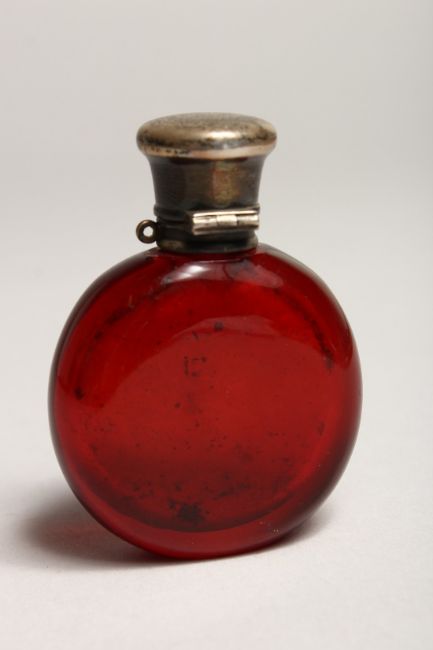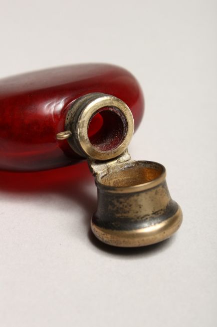 A VICTORIAN RUBY SCENT BOTTLE with silver top