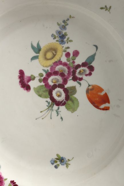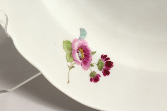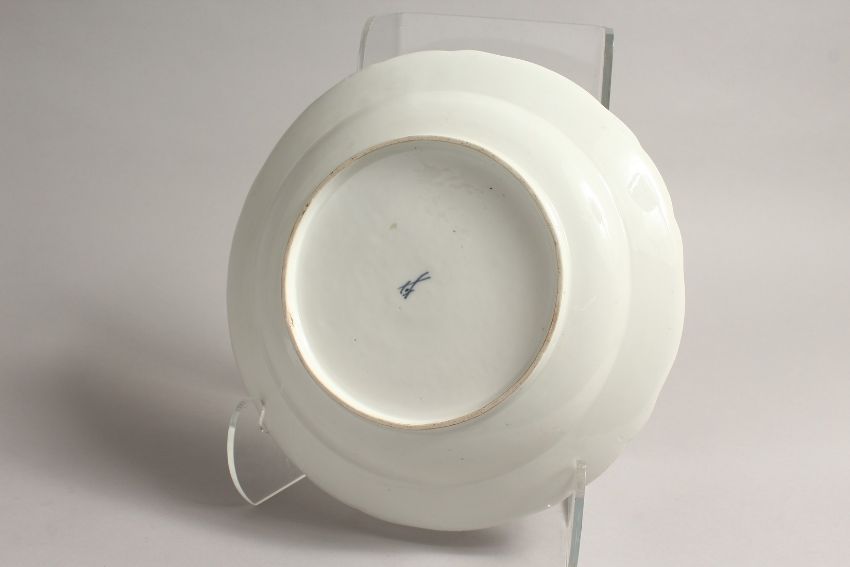 A GOOD 20TH CENTURY MEISSEN CIRCULAR DISH with shaped border and painted with flowers.
