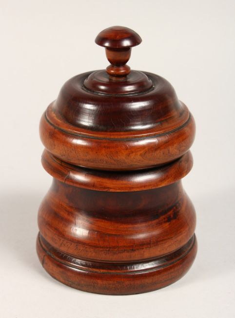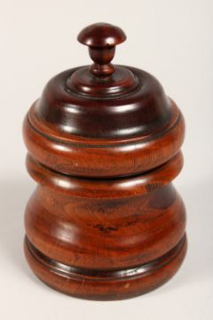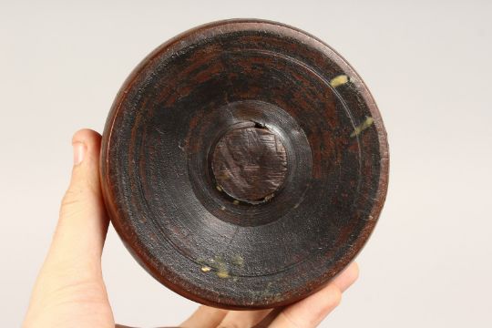A LIGNUM VITA CIRCULAR BOX AND COVER