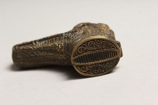 A BRASS NOVELTY CROCODILE VESTA