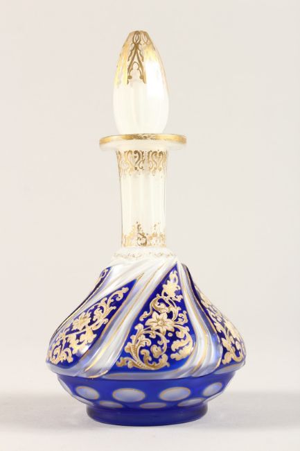 A BOHEMIAN OVERLAY GLASS SCENT BOTTLE AND STOPPER.