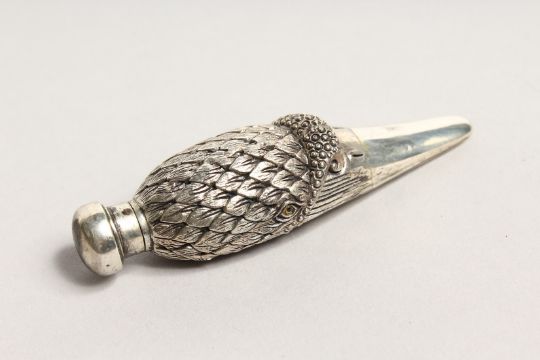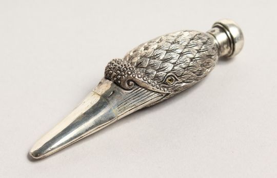A SOLID SILVER SWAN'S HEAD PERFUME BOTTLE
