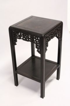 A GOOD CHINESE REDWOOD SQUARE TOP STAND with cross banded top and under tier.