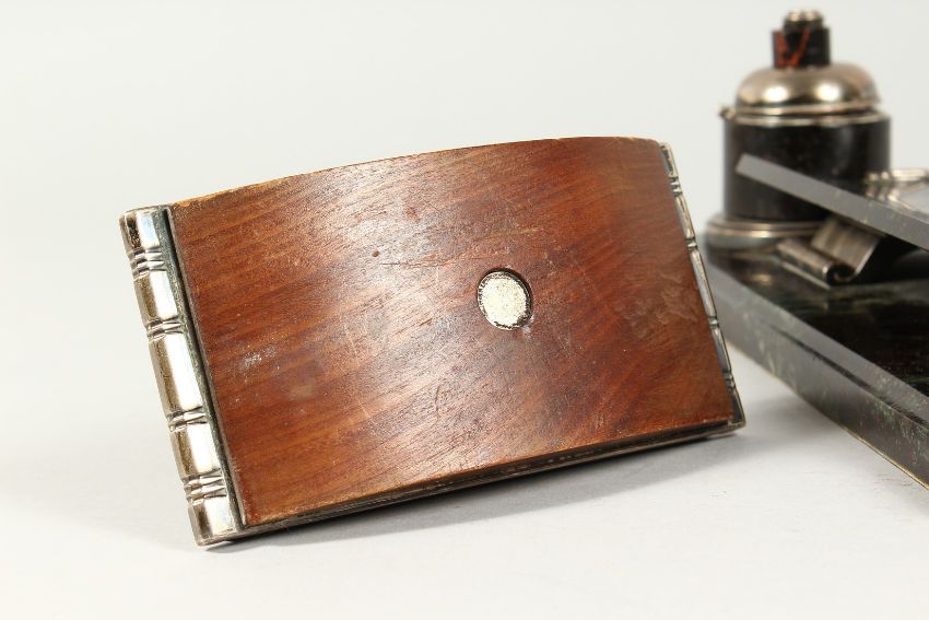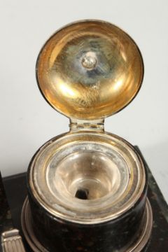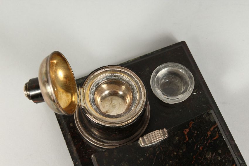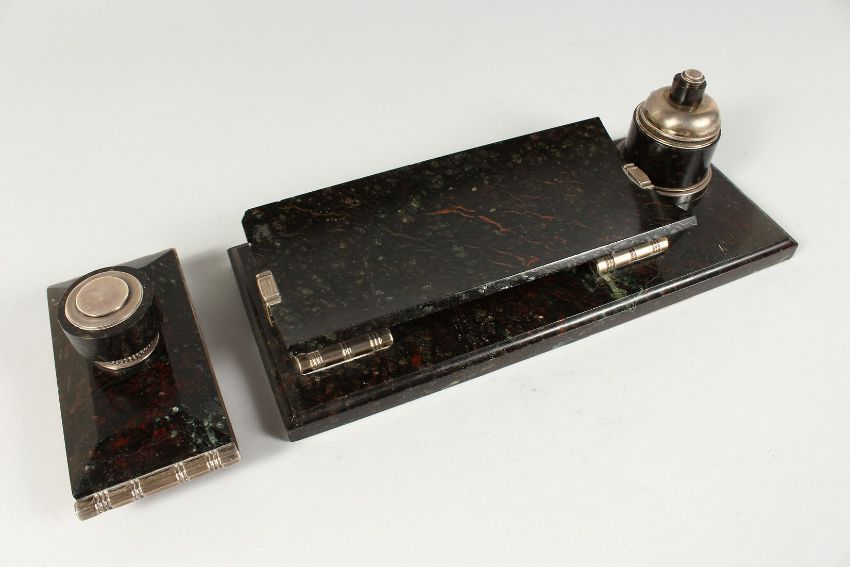 A VERY GOOD ART DECO MARBLE DESK SET.