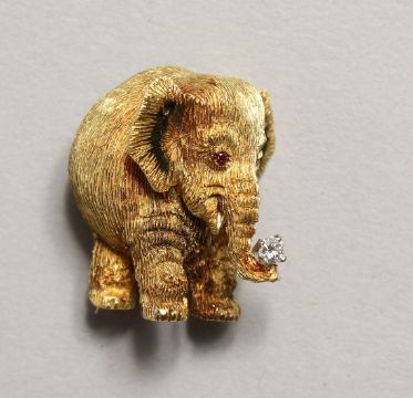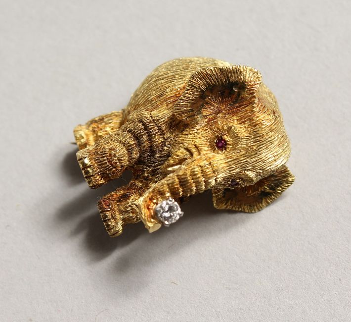A GOOD 18CT GOLD DIAMOND SET ELEPHANT BROOCH