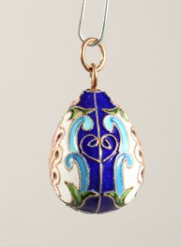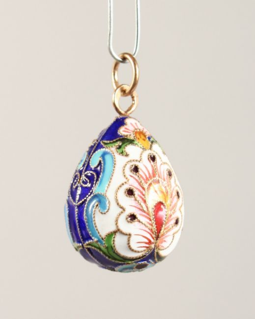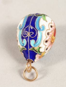 A GOOD RUSSIAN SILVER AND ENAMEL EGG PENDANT