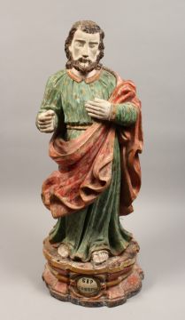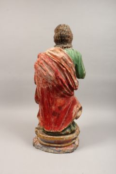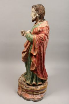 A 17TH - 18TH CENTURY CARVED WOOD FIGURE OF JOSEPH