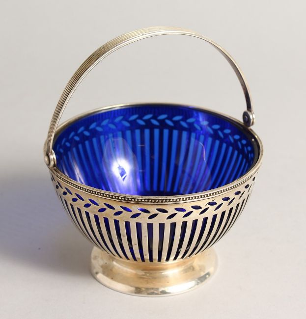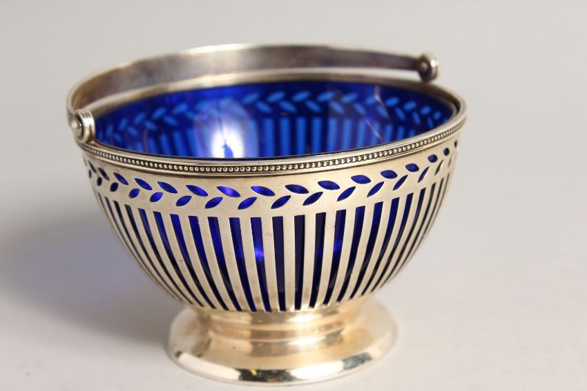 A TIFFANY & CO. PIERCED SILVER SUGAR BOWL with sapphire blue liner
