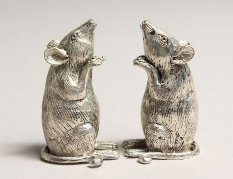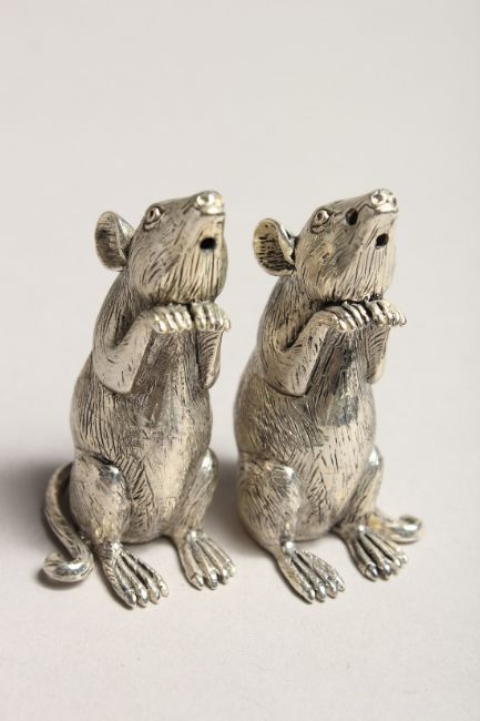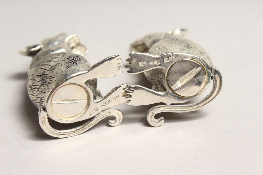 A PAIR OF .925 SILVER PLATED MICE SALT AND PEPPERS