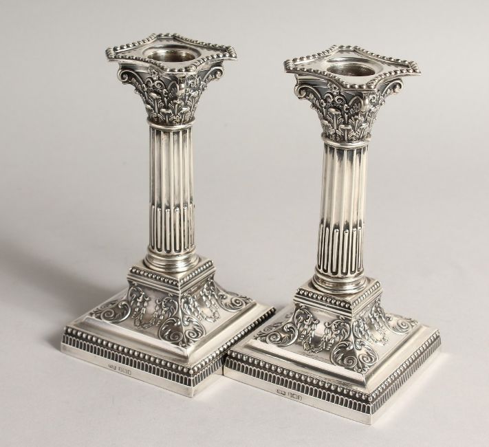 A PAIR OF CLASSICAL SILVER CANDLESTICKS