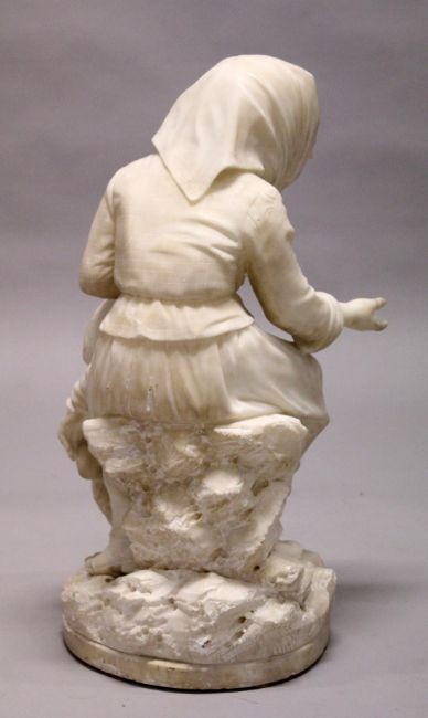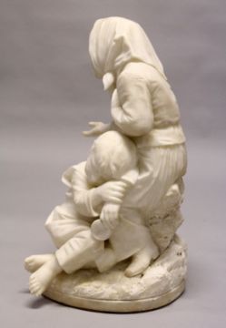A GOOD WHITE CARVED MARBLE GROUP OF A YOUNG MOTHER AND CHILD.