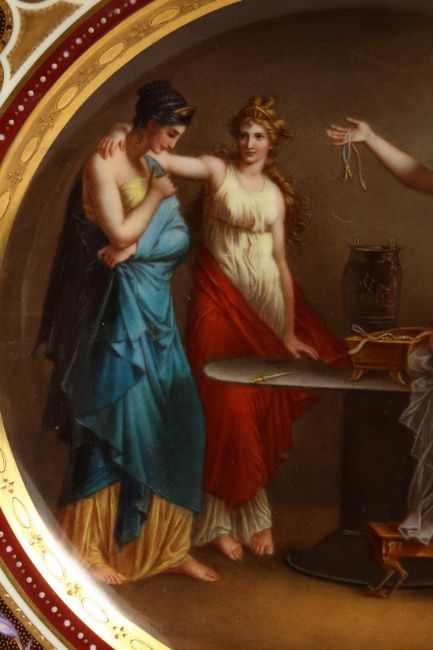 A VERY GOOD 19TH CENTURY VIENNA CIRCULAR PLATE with high quality painting and gilding, the centre with three classical females. `Psyche'.